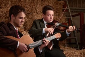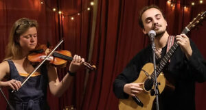 Arthur Coates & Kerran Cotterell are a powerhouse folk duo blending Scottish fiddle fire and English guitar gravitas with driving foot percussion and soulful vocal harmonies. Their mix of groove, wit, and inventive arrangements bridges tradition with modern edge – music that smoulders, sparks, and occasionally catches fire. Their music blends original compositions with tunes and songs they’ve found in the wild, delivered with harmonies, tall tales, and a streak of serious silliness.