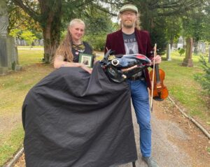 Tom and Jennifer present ‘Bitter and Mild’, a tongue in cheek celebration of their native North West of England, through songs, stories, and a skeletal horse. Flitting between timeless rural Cheshire and ever-changing industrial Manchester, ‘Bitter and Mild’ is a fast-paced, anarchic, singalong ramble and rant through those steadfast and vital traditions upon which we lean as we seek to make sense of the bewildering changes wrought by industrialisation and modernity: singing, dancing, drinking, making giant puppets out of expired farm animals.